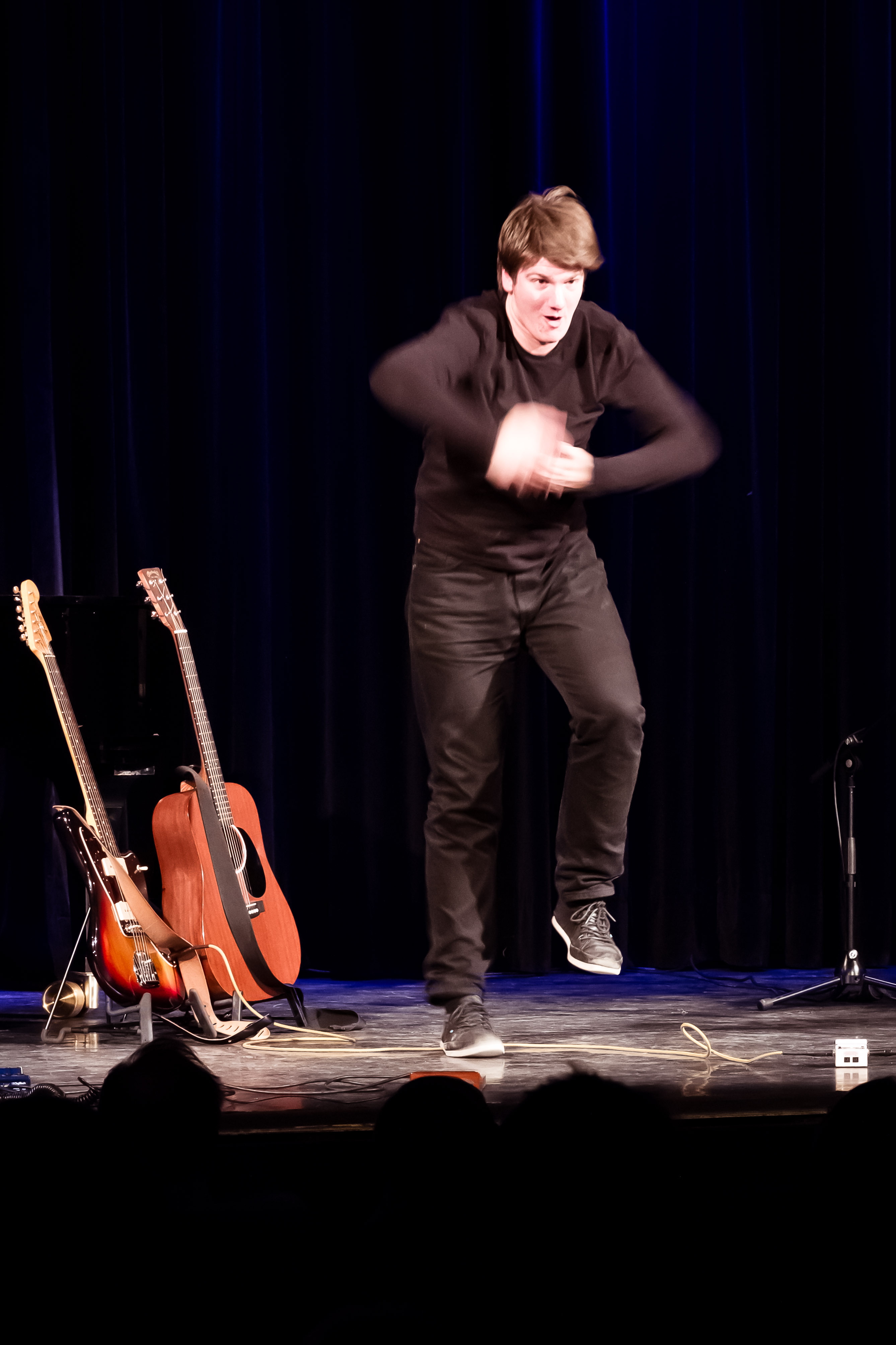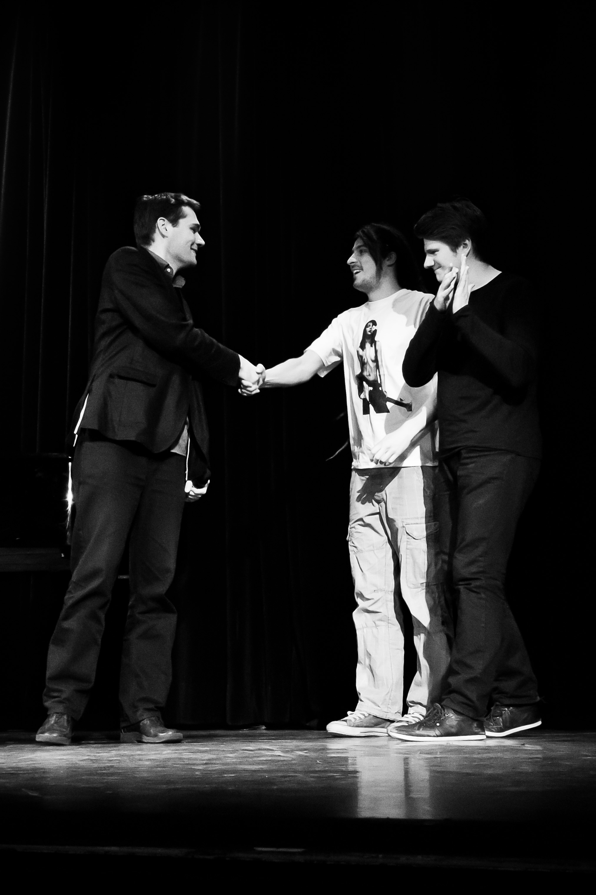 Sie sind jung, sie sind groß, sie sind musikalisch, sie sind grandios! Einige Gemeinsamkeiten haben Stefan Ebert und El Mago Masin, die Kontrahenten des Spiels am 16.01. in Frankfurt im Neuen Theater Höchst, nichtsdestotrotz müssen sie, so wollen es die Spielregeln, an diesem Abend versuchen, möglichst viele Punkte der Publikumsjury für sich zu gewinnen. In der ersten Halbzeit begeisterte Stefan Ebert, der wilde Songpoet (und die, die ihn schon gesehen haben, die wissen wieso man ihn so nennt), mit ungeahnten musikalischen Möglichkeiten. Nach kurzer Pause legt El Mago Masin nicht minder kreativ nach und beeindruckt unter anderem mit seiner Merkfähigkeit, nicht nur in Sachen Alphabet, sondern auch bei Bekannten, die er im Publikum widererkennt, wenngleich sich diese nicht an eine Begegnung erinnern können. Vielleicht war es das, was die Jury dazu bewegte, El Mago Masin am Ende mit sattem Punktevorsprung gewinnen zu lassen.
