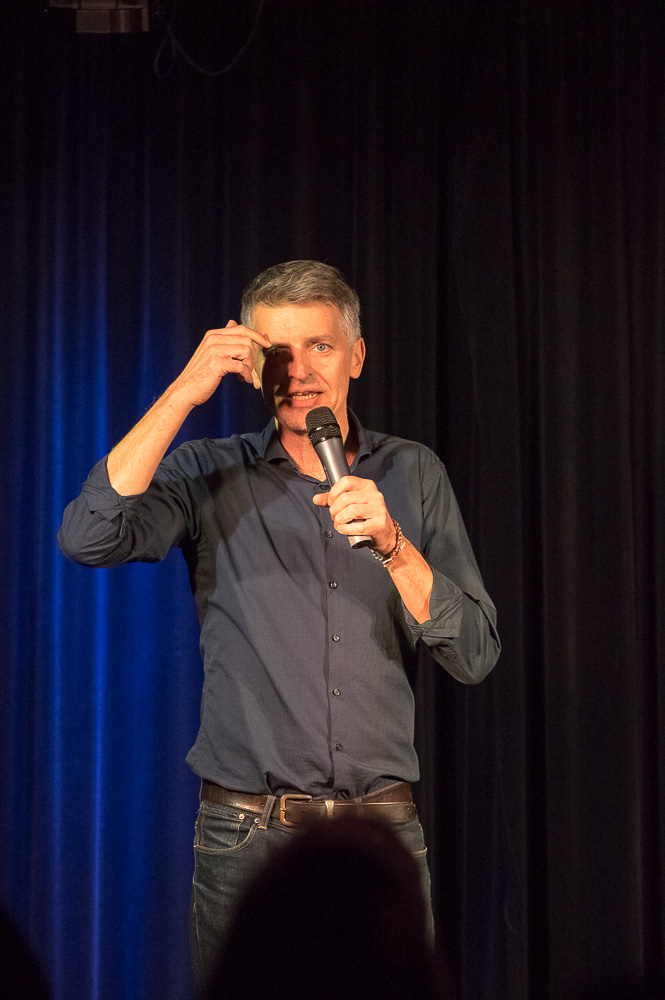 Wieder mal ein toller Kabarett-Abend im Theater am Küchengarten! Diesmal standen Kuriositäten-Komiker Anton Grübener und der unaufhörlich alternde Johannes Flöck auf der Bühne. Moderiert wurde wie immer von der wundervollen Ninia la Grande. Auch mit dabei: unser grandioses Hannoveraner Publikum – und unser Fotograf Thomas Kolwe, der Bilder zum Immer-Wieder-Anschauen mitgebracht