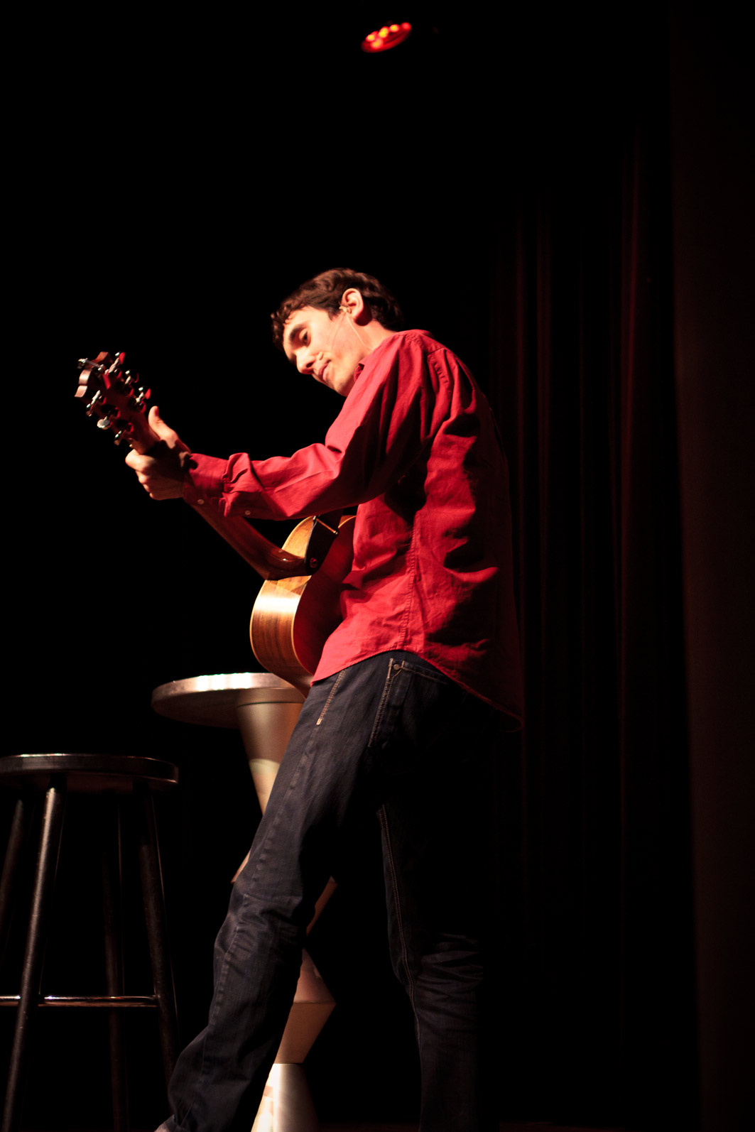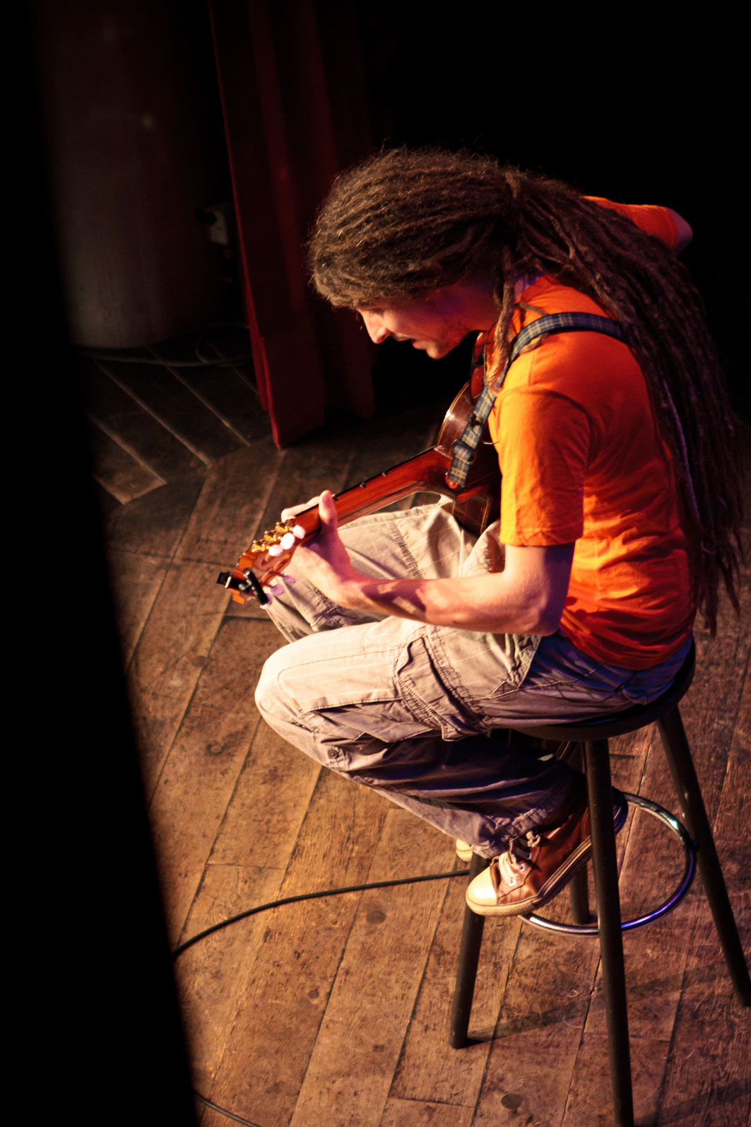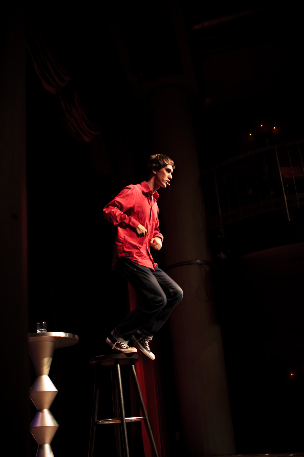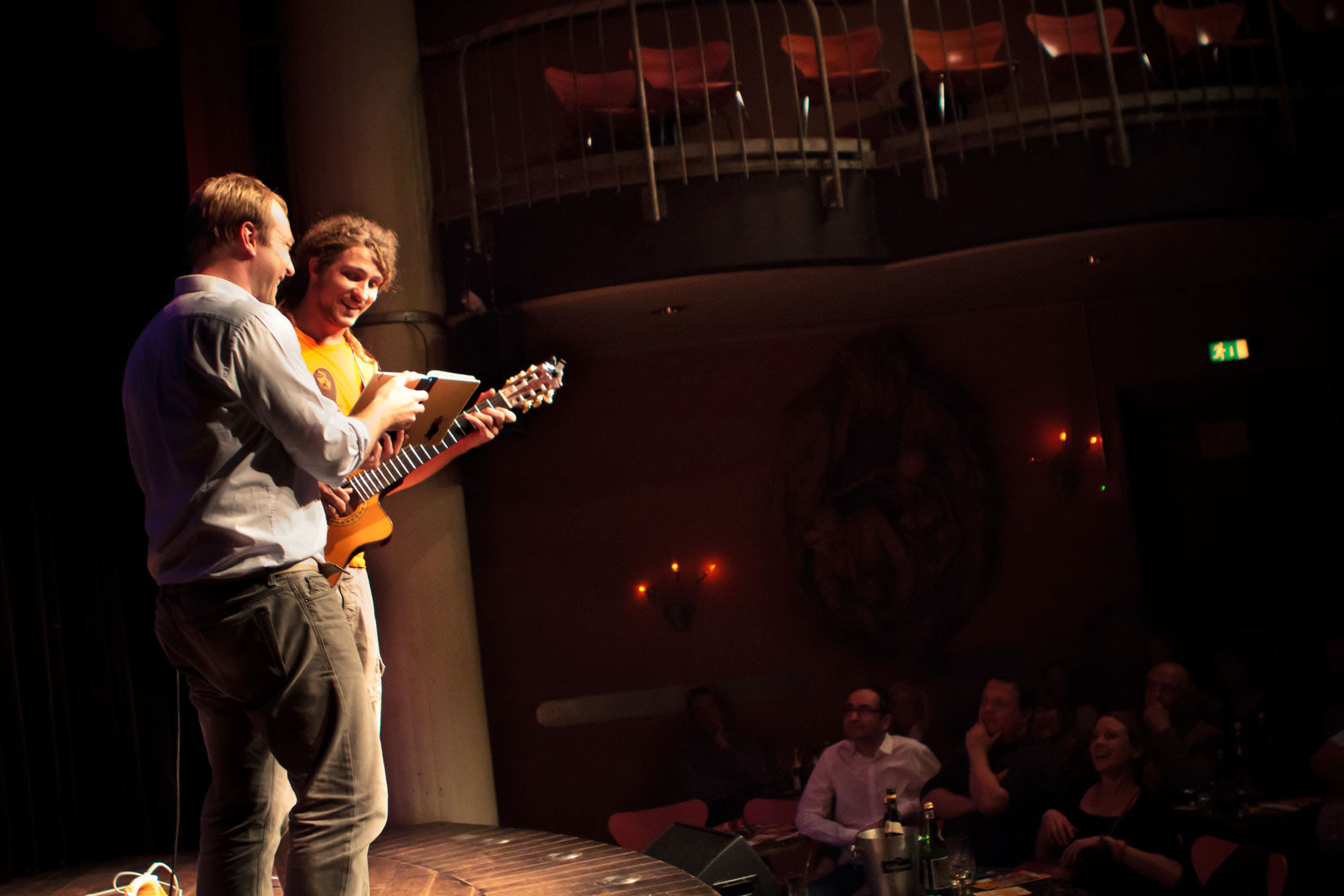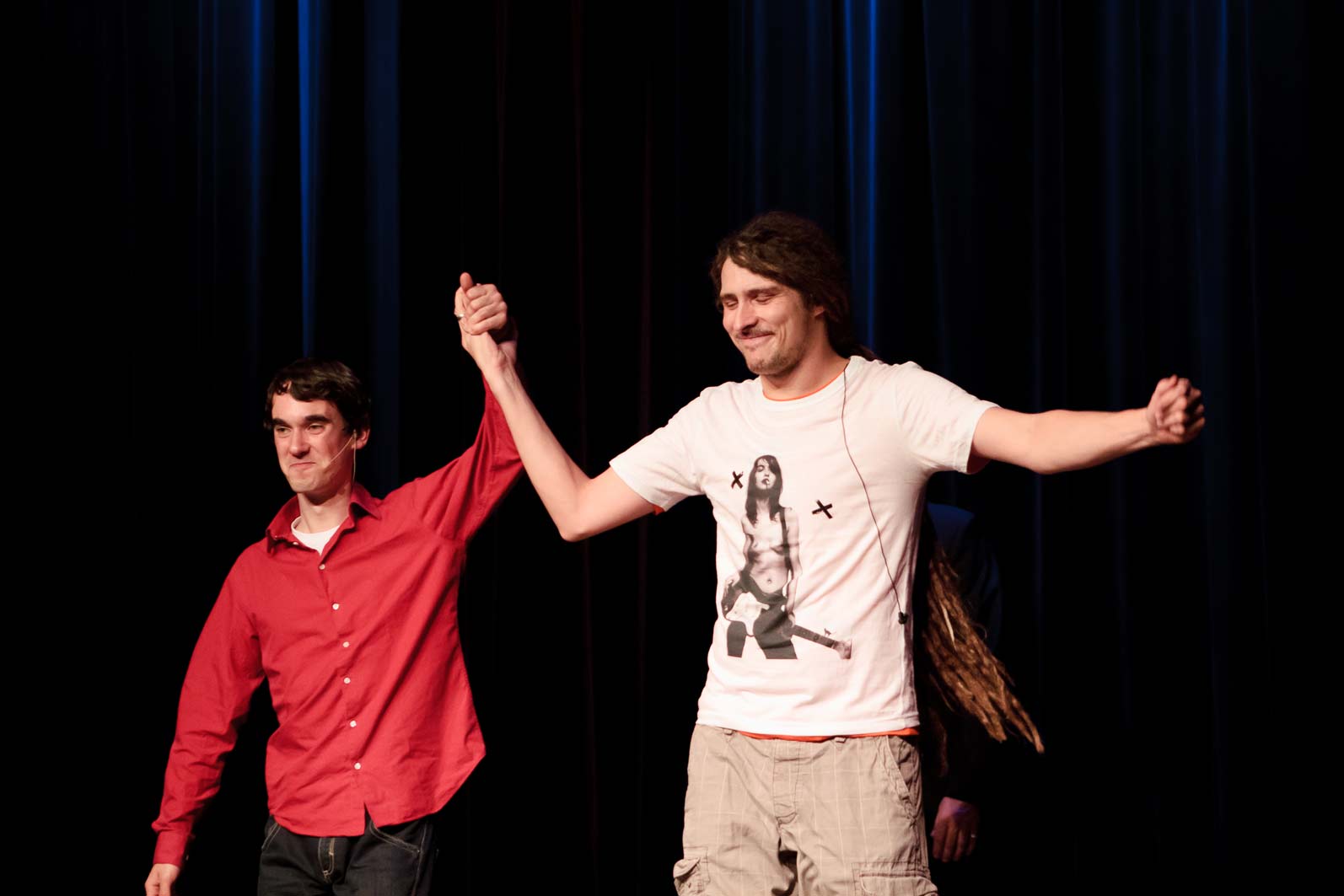 Die ersten 45 Minuten gehörten Michael Feindler, der die Bühne stets bewaffnet betritt. Sein Geschütz ist sie Sprache und die hält er scharf, denn wie nur wenige weiß er wirklich damit umzugehen. Mit lyrischer Feinfühligkeit bietet er Einblick in die Themen seiner Generation und beschwert sich nicht wie die anderen über die Deutsche Bahn, sondern erklärt die unabdingbare Folge, die eine einzige Entlassung wegen Verspätung nach sich gezogen hat. Es waren sicher nicht nur die uminterpretierten Klassiker, die dafür sorgten, dass der ein oder andere sich, zu Hause angekommen, einen angestaubten Goethe-, Schiller- oder Tucholsky-Gedichtband aus dem Bücherregal zog.