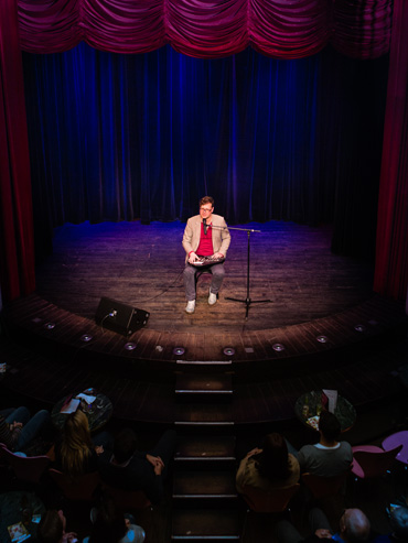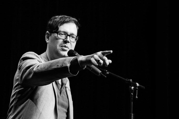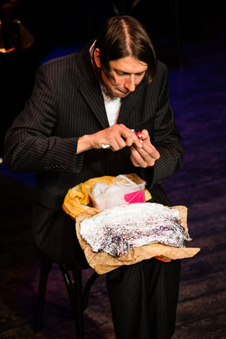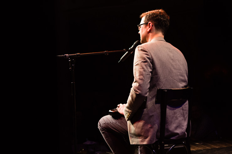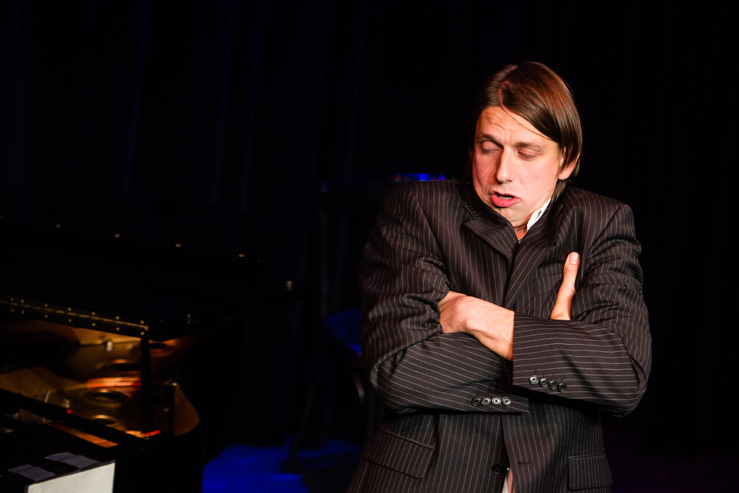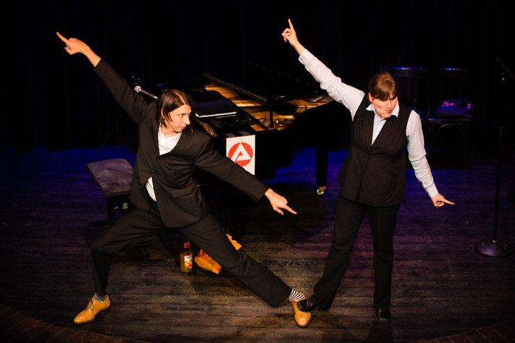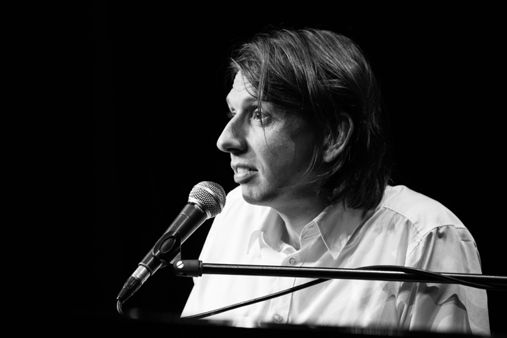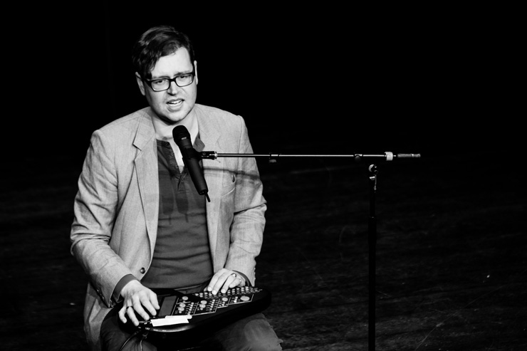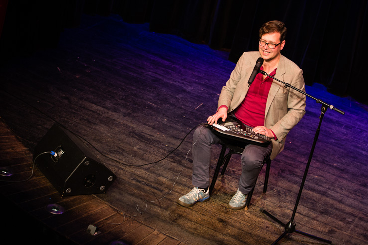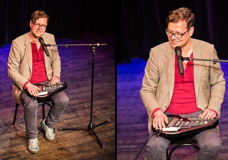 In der ersten Halbzeit legte C. Heiland dann mit einer grandiosen Show vor – und das trotz, vielleicht sogar wegen, seiner Übernächtigung. Denn wegen dem scheiß Mond findet er in seinem Arbeitszimmer schon lange keinen Schlaf mehr. Für das Publikum zahlt sich das aus, denn er begeistert mit flach-tiefgründigen, teilweise grotesken, aber immer wahnsinnig lustigen Texten, die immerzu von Omnichord begleitet und von flachen Witzen unterbrochen werden.
