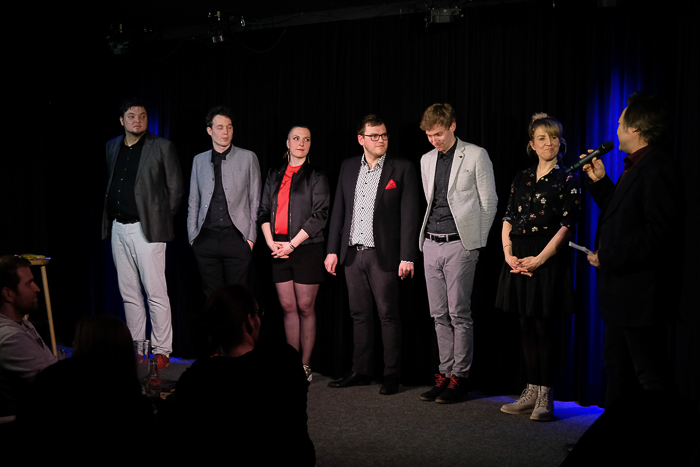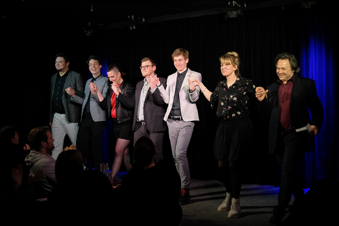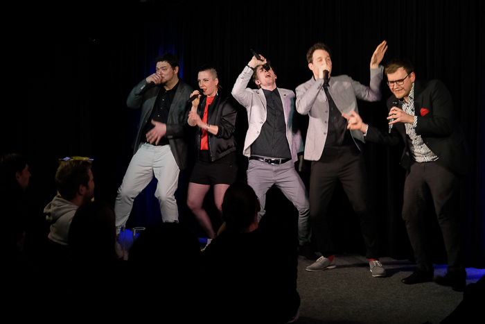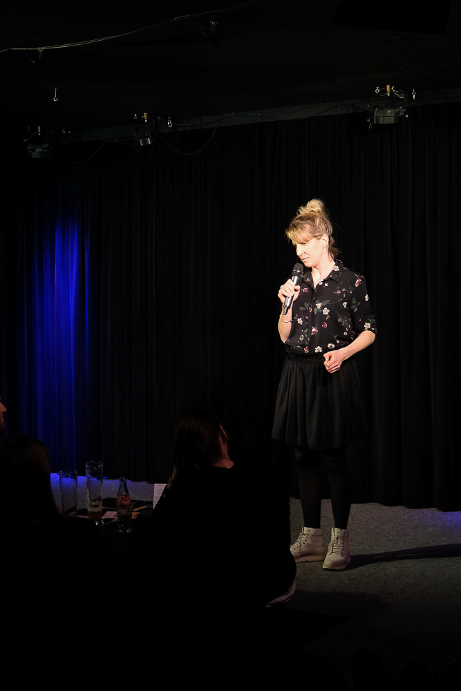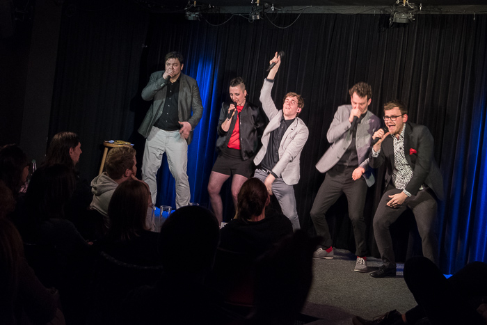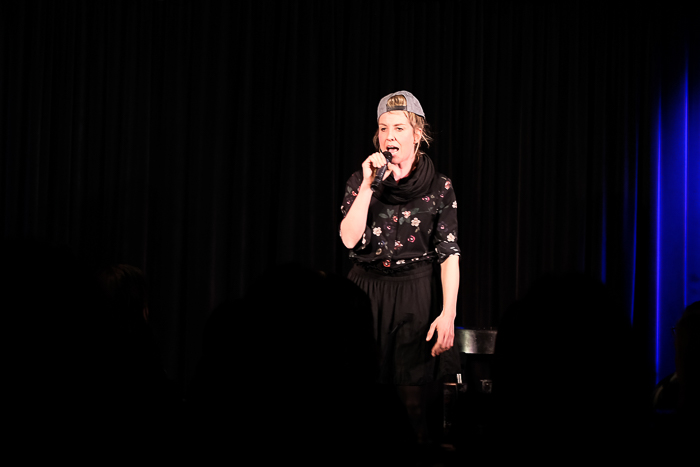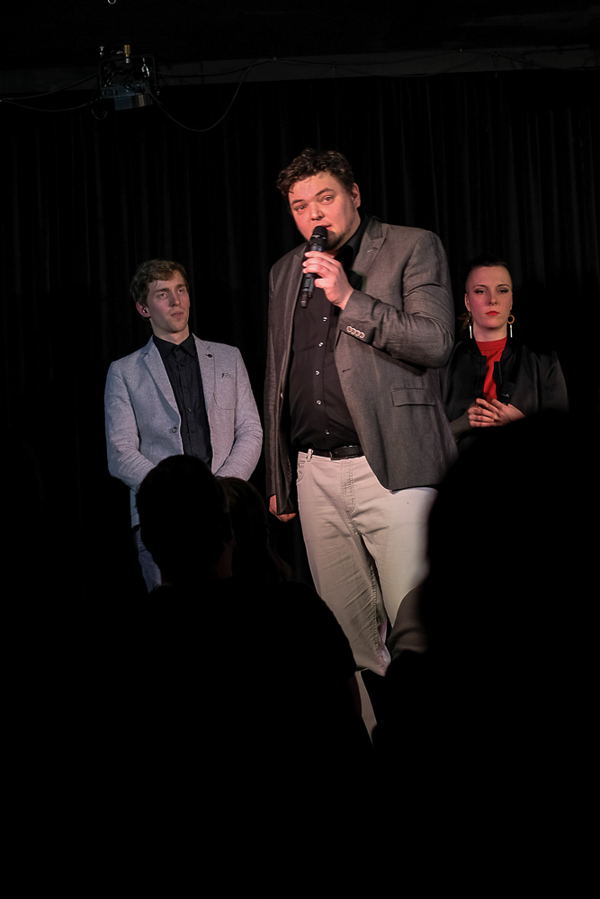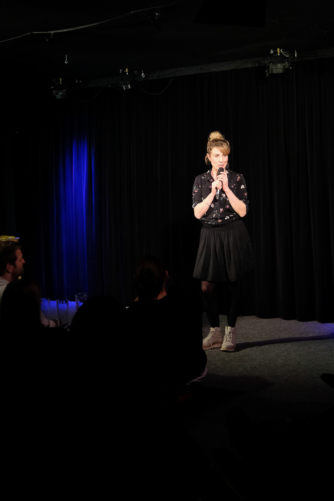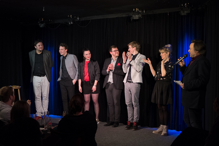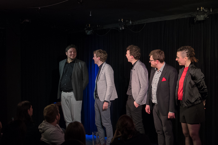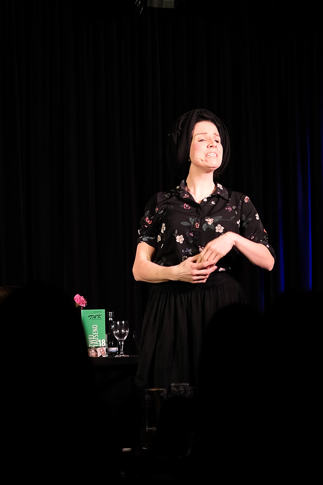Was war denn im TAK los? Es ist zwar immer gute Stimmung in diesem wunderschönen Theatern in Hannover und jede Vorstellung bis auf den letzten Platz ausgebucht, aber da platze das Theater aus allen Nähten und die Zuschauer tobten von Anfang bis Ende. Dieser Abend bleibt unvergessen – ein Spitzenspiel mit zwei ausgeglichenen Halbzeiten. Eine Nora Boeckler in Bestform wirbelt auf der Bühne mit Typenspiel, Parodien und Comedy auf hohem Niveau hin und her und brachte die auftrumpfende A-Cappella Gruppe Hörband in echte Bedrängnis. Mit Ihrer unnachahmlichen Art und Weise und ihre herausragenden Songs rissen sie am Ende das Spiel noch an sich und konnten sich knapp durchsetzen. Alle Ergebnisse des Spieltags auf einen Blick: Ergebnisse und hier auch die Tabelle. Moderiert wurde der Abend von dem wunderbaren Slammer Johannes Weigel.