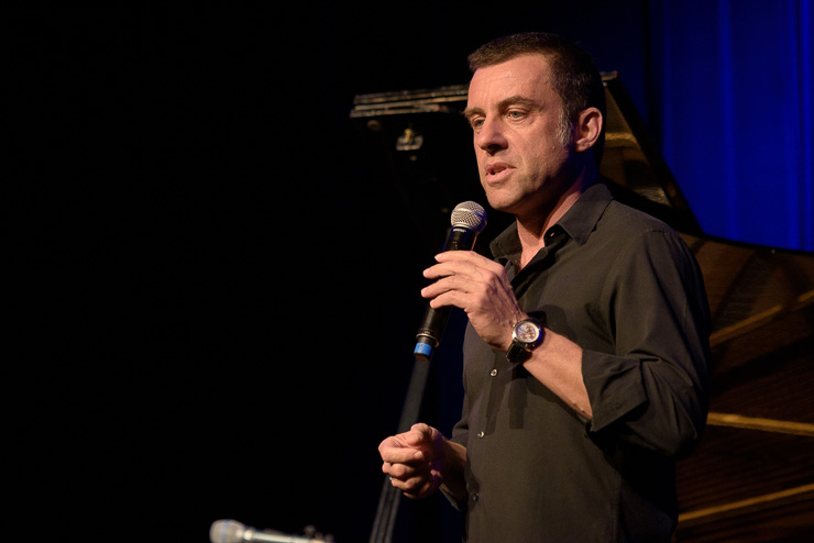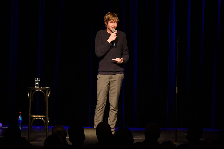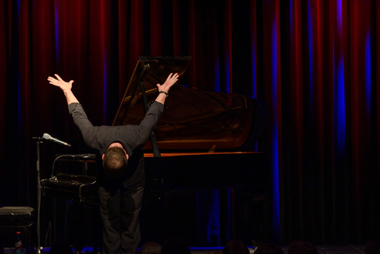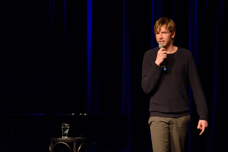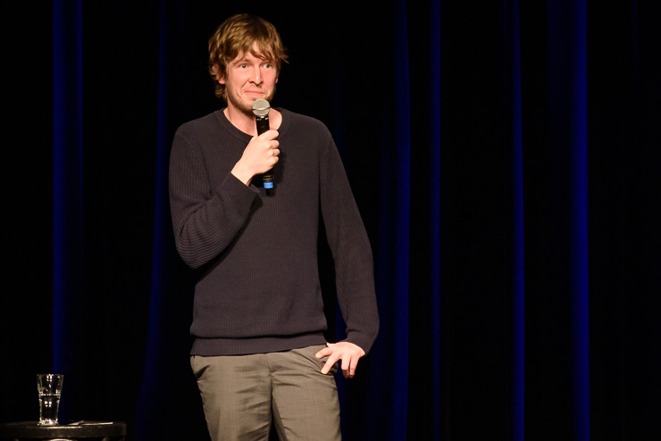 der unbekümmert und unerbittlich mit einer ausgefallenen Sicht auf die Welt und mit Themen aus Politik, Alltag und der Popkultur trat gegen Martin Schmitt der eine gelungene Mischung aus bayrischen Songs, Blues, Boogie Woogie und Gedichten präsentierte an. Moderiert wurde der Spass von Theo Vagedes, der nach zwei grandiosen Halbzeiten im Theater alte Mühle das Ergebnis der Publikumsjury und den Gewinner des Abends Martin Schmitt verkündete.