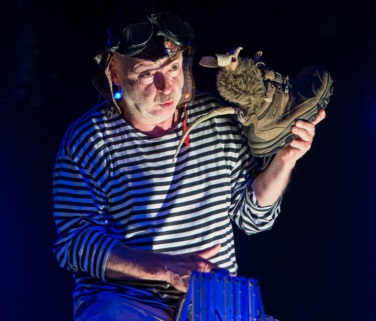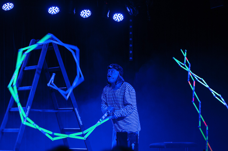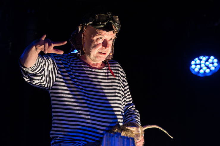 Hans tritt zusammen mit einer Ratte auf, aber sie enttäuscht ihn, sie ist nicht nur bescheuert, sondern auch noch taubstumm. Man merkt, Krüger ist gelernter Puppenspieler. Aber nicht nur das: Er ist auch Feuerwerker und er brennt er uns ein wunderbares Feuerwerk ab, es geht ganz bescheiden mit einer Knallerbse los, da die erste Rakete, dann eine wunderschöne Rakete mit Fontäne, eine Rose am Himmel, eine Sonne geht auf, Wunderkerzen werden verteilt, ein Komet, eine Doppelsonne, dann ertönt die Feuerwerksmusik von Händel, Nebel steigt auf. Was sehen wir? Das erste mechanische Holzfeuerwerk der Welt! Wer hat jemals ein solches Wunderwerk gesehen?