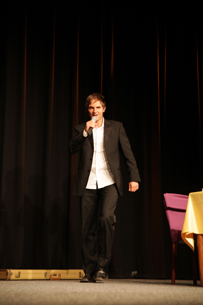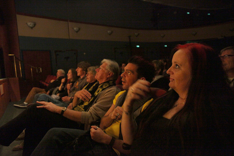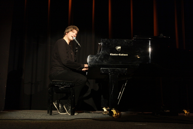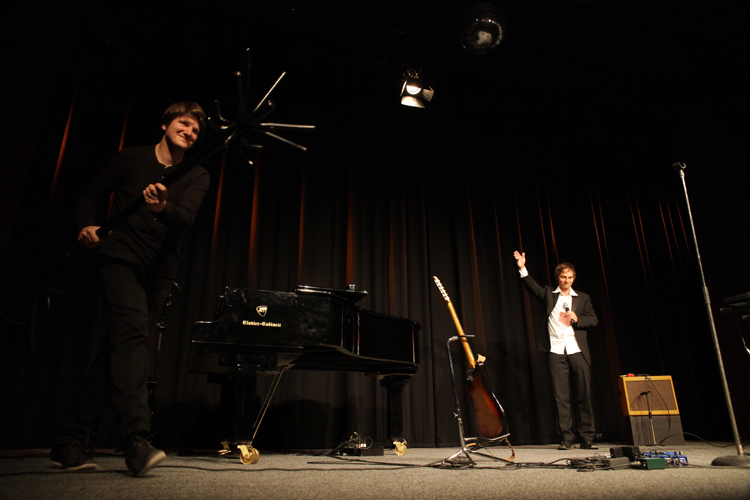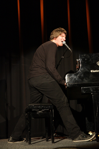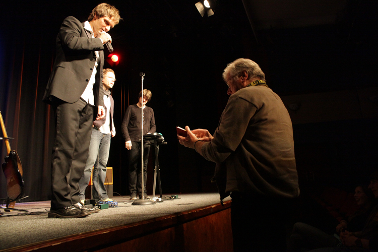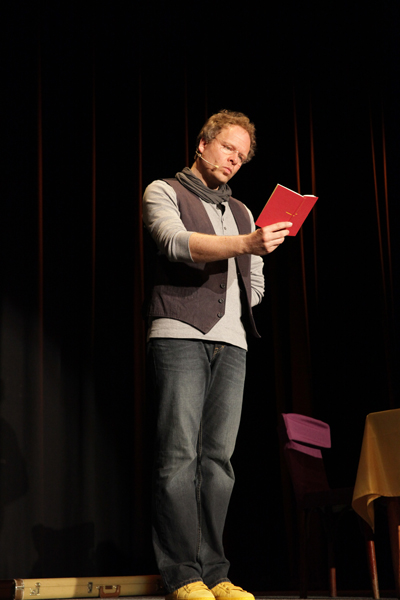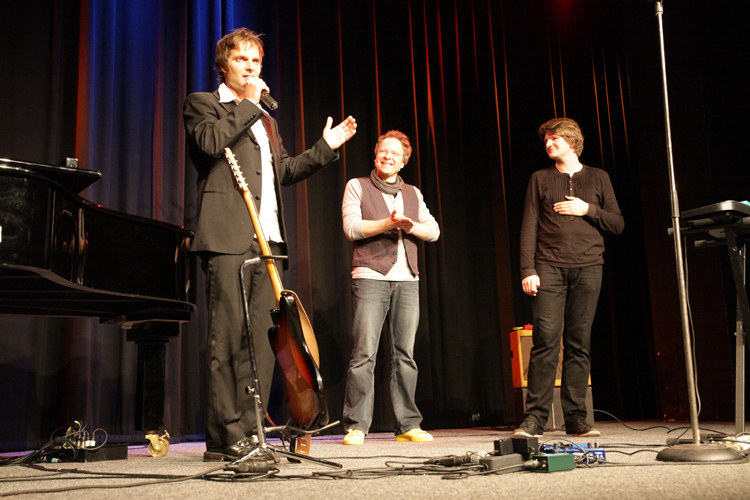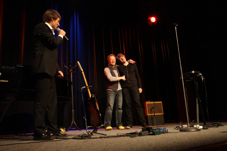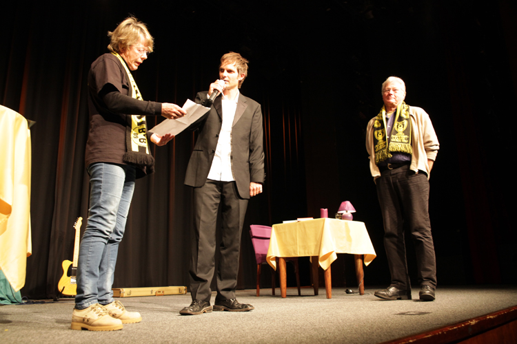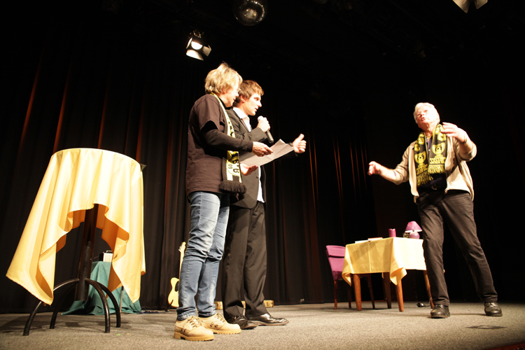 Zu guter Letzt gab es eine spontane Zugabe: Die Zuschauer wählten Text und Instrument (die Entscheidung fiel auf „Seite 69“ und das Keyboard) – Görtz rezitierte, Ebert unterstrich dies musikalisch und auch Bundestrainer Theo Vagedes ließ es sich nicht nehmen, die improvisierte Nummer als Cheerleader körperbetont zu unterstützen.