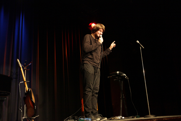 Nicht minder vielfältig trat Stefan Ebert in der zweiten Halbzeit auf die Bühne und rockte was das Zeug hielt. Selten dürfte dem Berliner Publikum eine solche Vielzahl an Instrumenten, Eindrücken und tiefgründigen Texten in einer halbzeitlangen Ein-Mann-Show vorgeführt worden sein.