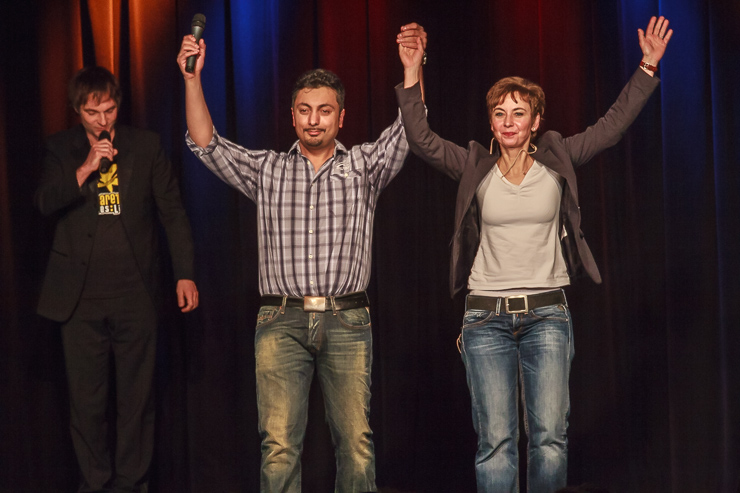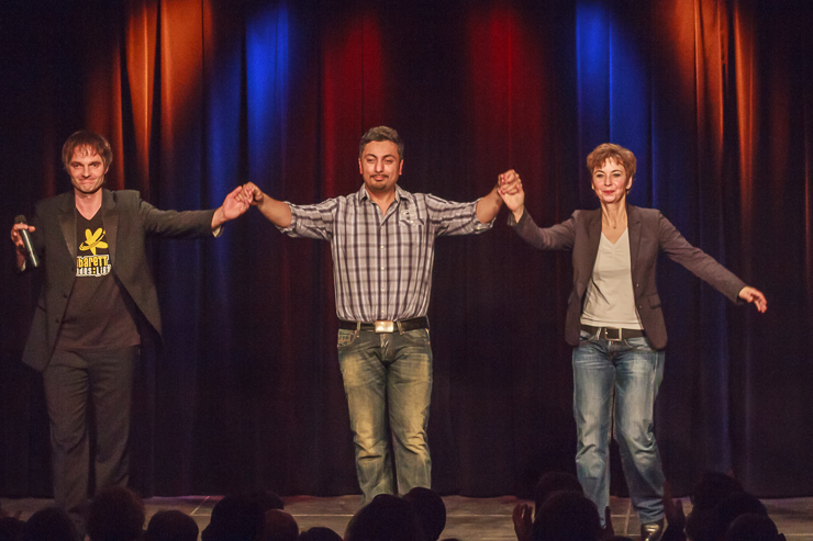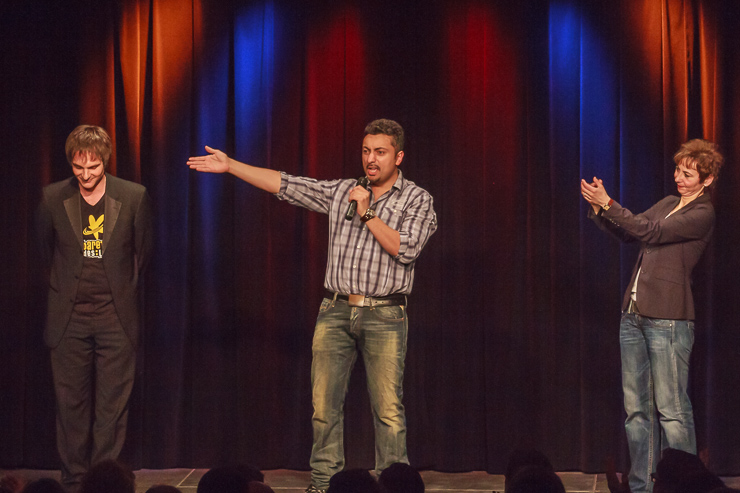 Es war ein toller Abend, als Sabine Domogala im Mainzer Unterhaus auf Özgür Cebe traf: In der ersten Spielhälfte plauderte Gottes vergessene Therapeutin nicht nur aus dem Nähkästchen der sehr gewagten Therapie-Methoden – sie ließ auch bei den Mainzern ihrer Fachkenntnis freien Lauf. Der bewegte Muselmann beschrieb in der zweiten Spielhälfte seine Mühen, den Spagat, den er als Rheinländer mit türkischen Wurzeln zu bewältigen hat, derart anschaulich, dass kein Auge trocken blieb. Am Ende verkündete Bundestrainer Theo Vagedes wie immer gleich das Ergebnis des soeben erlebten Abends: Cebe gewinnt mit 6.14 Punkten.