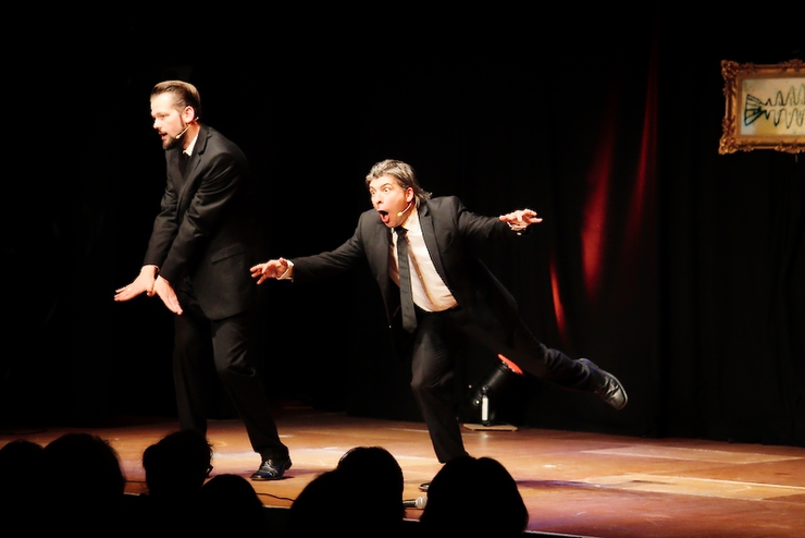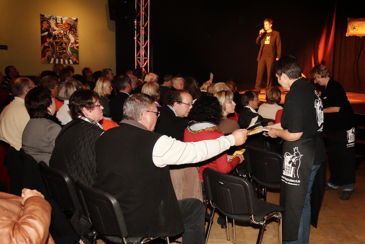 Ein tolles Spiel mit knappem Ergebnis lieferten sich am zweiten Spieltag im ausverkauften Kulturkraftwerk der grandiose Hirnakrobat Gunkl und ONKeL fIsch mit ihrem doppelköpfigem Actionkabarett. Der Österreicher Gunkl setzte auf logische Schlussfolgerungen – einen herzlichen Glückwunsch an alle, die da mithalten konnten – und ONKeL fISCH heizten dem Publikum als „Promotion-Team Deutschland“ in der zweiten Halbzeit so richtig ein! Eine sehr schwere Entscheidung, die sich im Ergebnis widerspiegelt: knapper Sieg für ONKeL fISCH mit 0,08 Punkten Vorsprung!