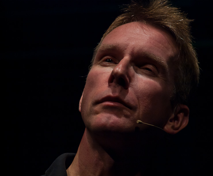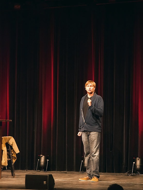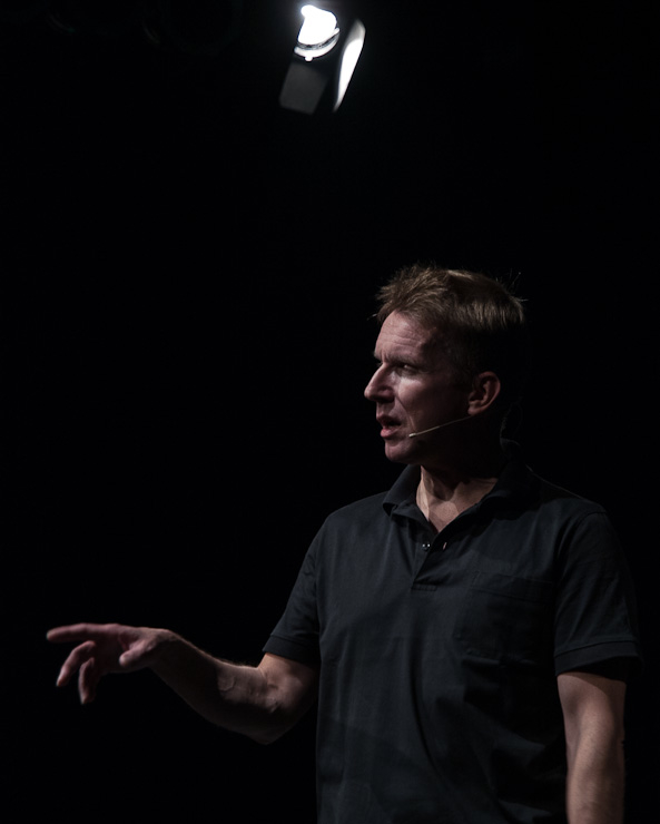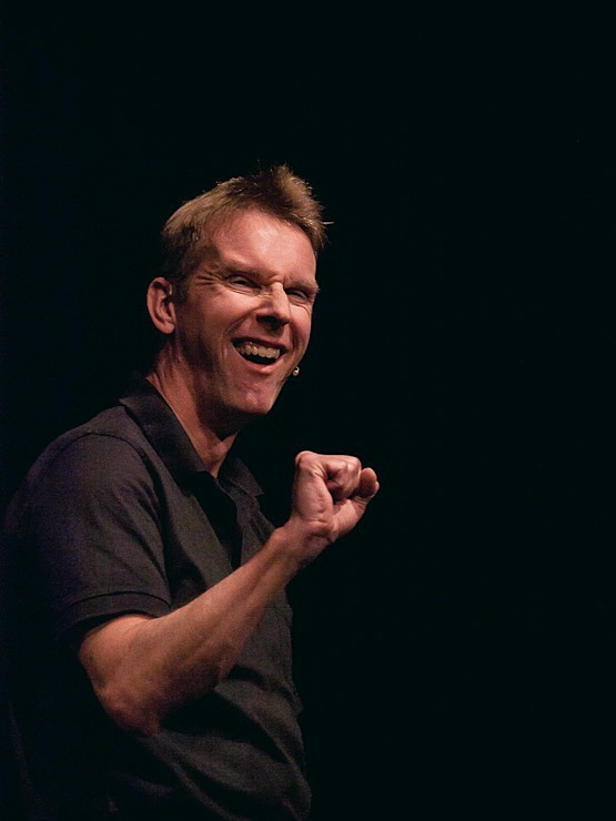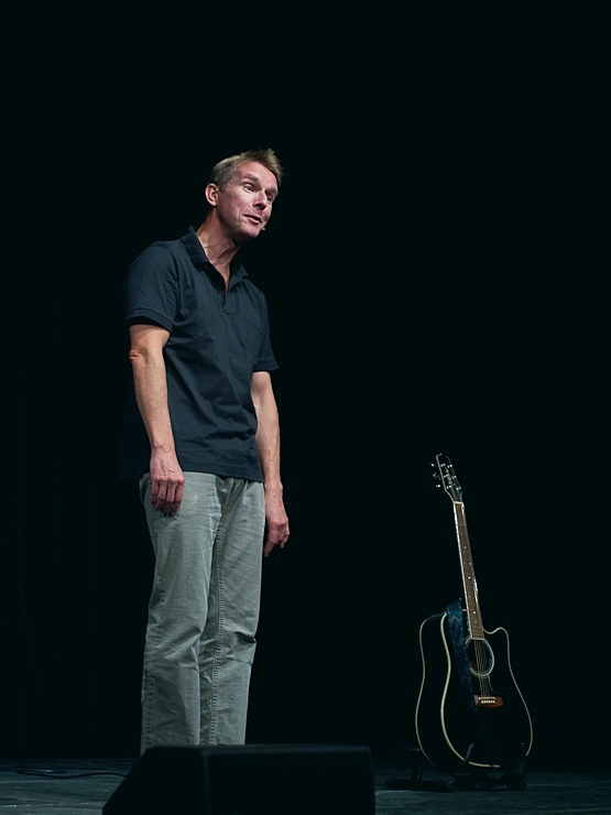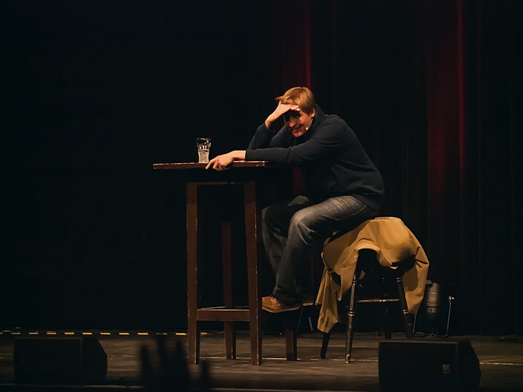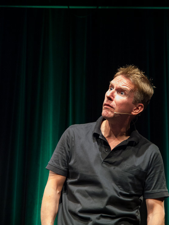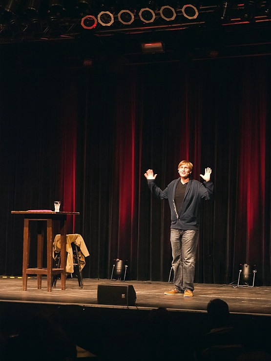 Nach einer kurzen Pause bestritt dann Peter Vollmer eine grandiose zweite Halbzeit: Der Middle-Ager nahm sich und seine Altersgenossen ordentlich auf die Schippe und regte dann und wann auch zum Nachdenken an. Warum es sich eigentlich nicht lohnt joggen zu gehen? Die Zuschauer in Wilhelmshaven wissen es jetzt und sie kennen auch einen Ausweg aus dem Jammertal der Generation Ü50!