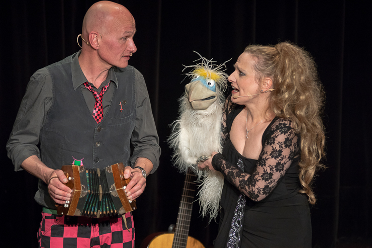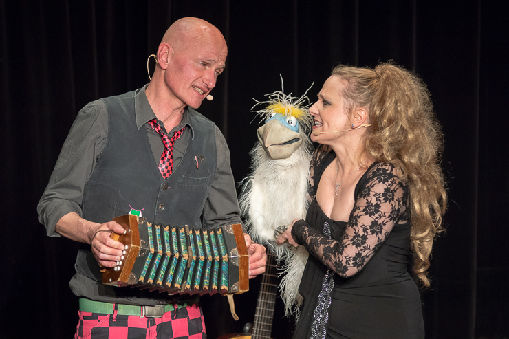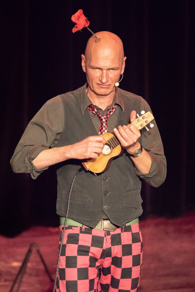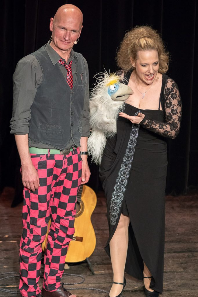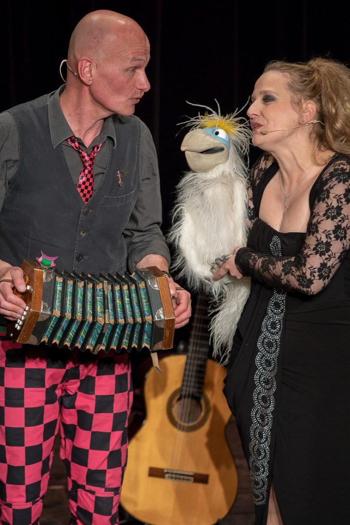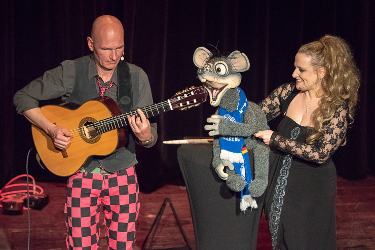 Letzte Spieltag im Senftöpfchen Köln – ein echtes Highlight der Saison. Trotz tollen Wetters sind etliche ZuschauerInnen ins Theater gekommen. Zwar war es nicht komplett gefüllt, aber die Stimmung und der Applaus während und nach den Auftritten war enthusiastisch überwältigend – und das zu Recht. Murzarelle legte in ihrer einzigartigen Kunst als Bauchsängerin eine Halbzeit hin, in der sie sich selbst übertrumpfte. Der Druck auf Klaus Renzel, der als Ehrengast für Paco Erhard (Achillessehnenriss) dabei war, war jetzt hoch, aber er setzte sich auf die Euphoriewelle und legte noch eins drauf. Als Zugabe gab es noch eine Premiere – zwei  gemeinsame nicht abgesprochene Songs, die in toben Applaus endeten. Als Dank für die tolle Arbeit während der ganzen Saison gab es auch noch Blumen für das Senftöpfchen Team. Danke auch für alle großartigen Bilder unseres KBL Fotografen Herbert Wintgen.