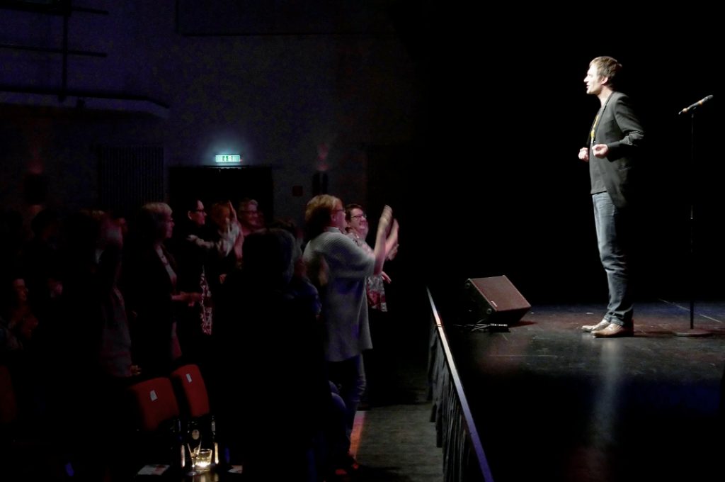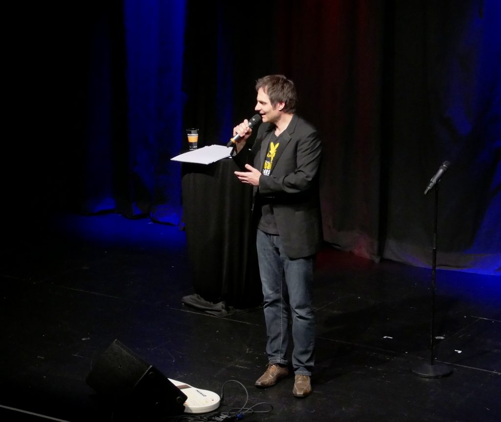 Für die Zuhörer hielt er reine Stand-Up-Comedy bereit. Klar, dass dabei Sprachkunst (zwischen vordergründiger Klarheit und hintergründigem Tiefsinn) nicht ganz oben auf der Agenda standen. Es war eher der bisweilen brachiale und die Geschmacksgrenzen streifende Humor, den Florian Simbeck bereithielt.