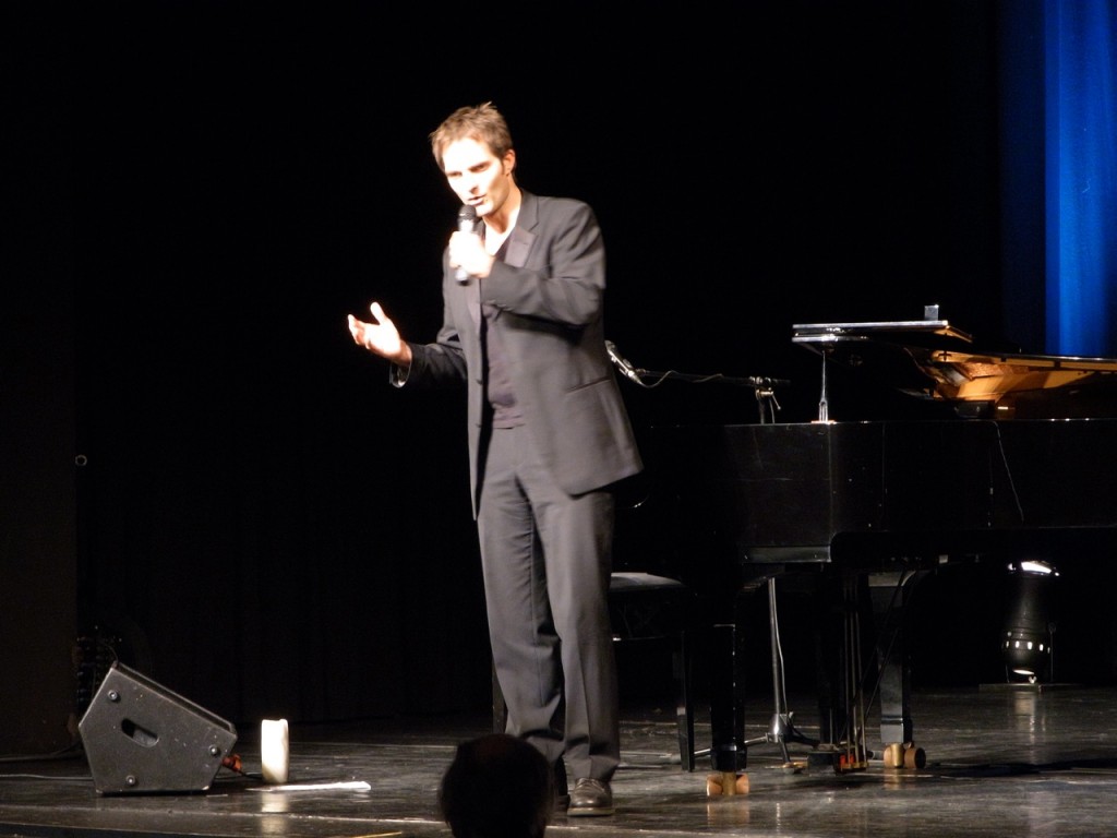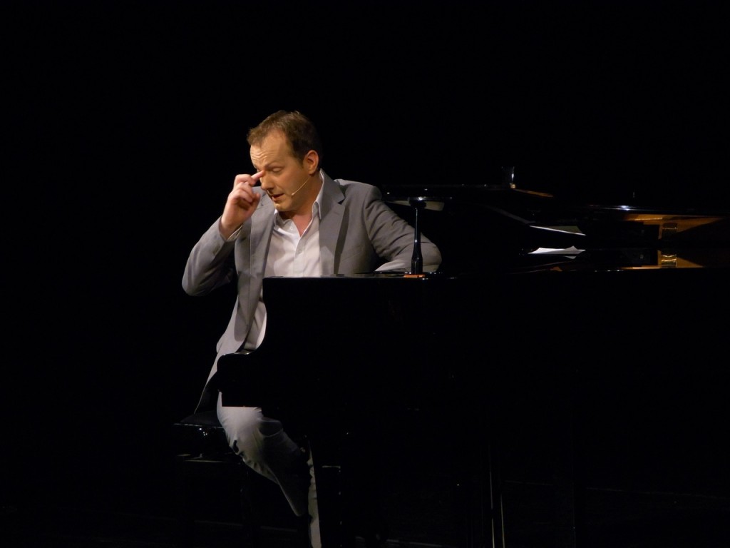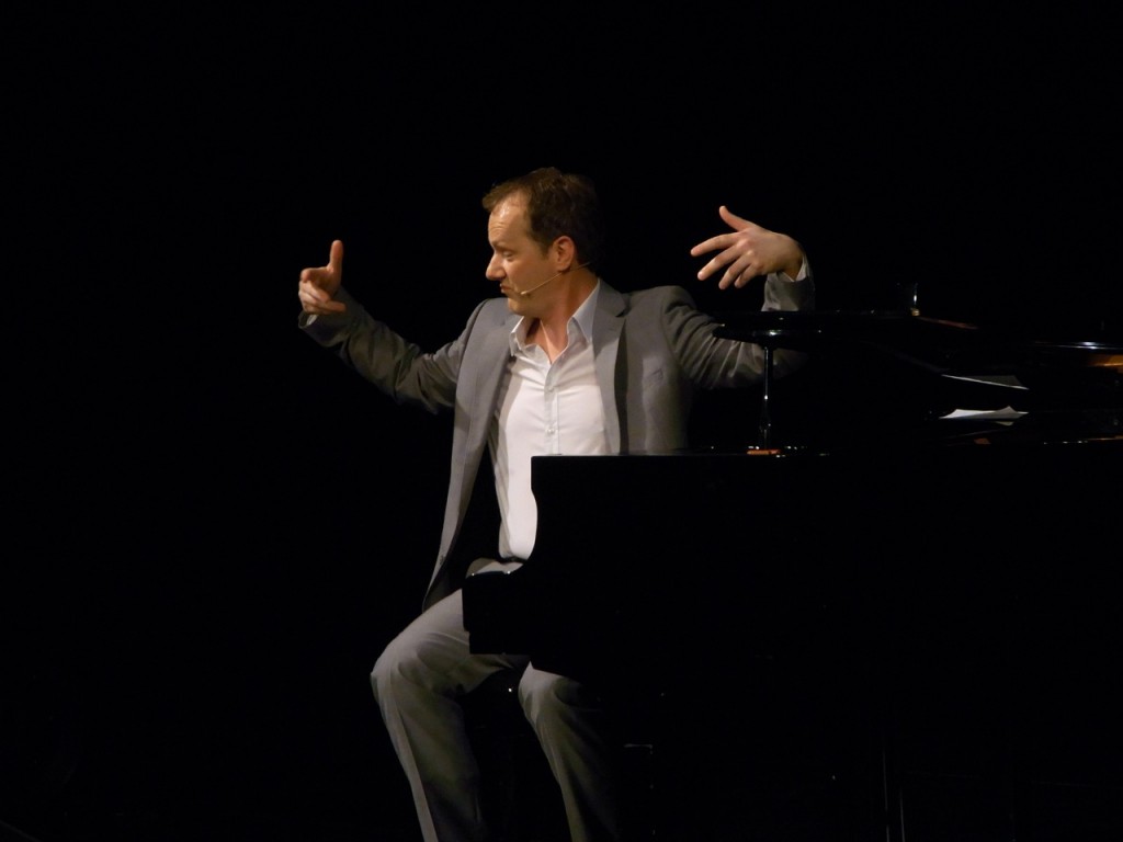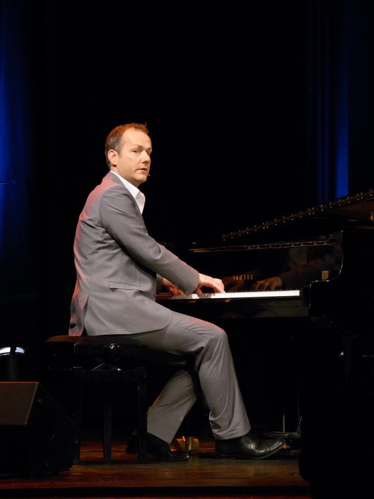 Eines haben die Anwärter auf den Titel des Deutschen Kabarettmeisters an diesem Abend gemein: Sie sind beide grandiose Pianisten. Durch die erste musikalische Halbzeit führte Johannes Kirchberg, der mit seinen Chansons die kleinen Haken und Ösen des Lebens feiert. Die zweite Halbzeit bestritt Daniel Helfrich mit Bravour, indem er die Publikums-Jury die ungeahnt wortgewandte Welt der Unterwasser-Tiere entführte. Nach fachmännischen Diskussionen gibt der Bundestrainer himself das Ergebnis bekannt: Mit 5.8 Punkten entscheidet Johannes Kirchberg die Partie für sich.