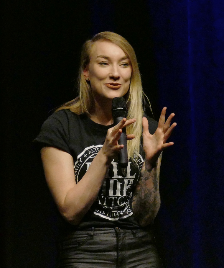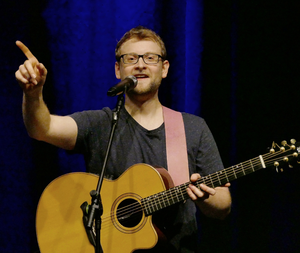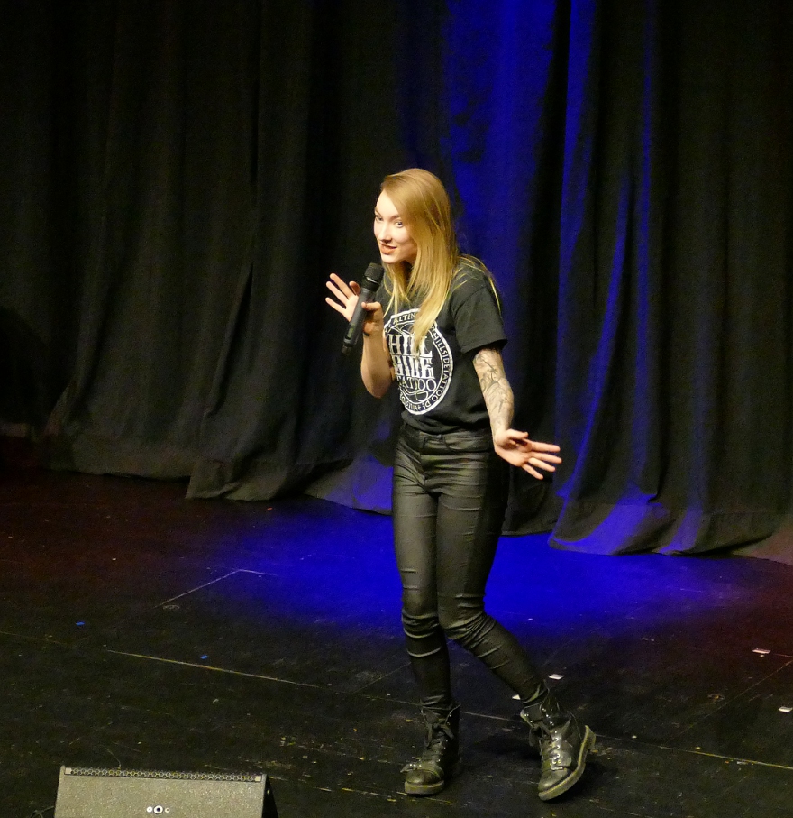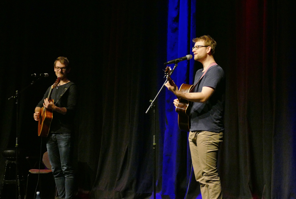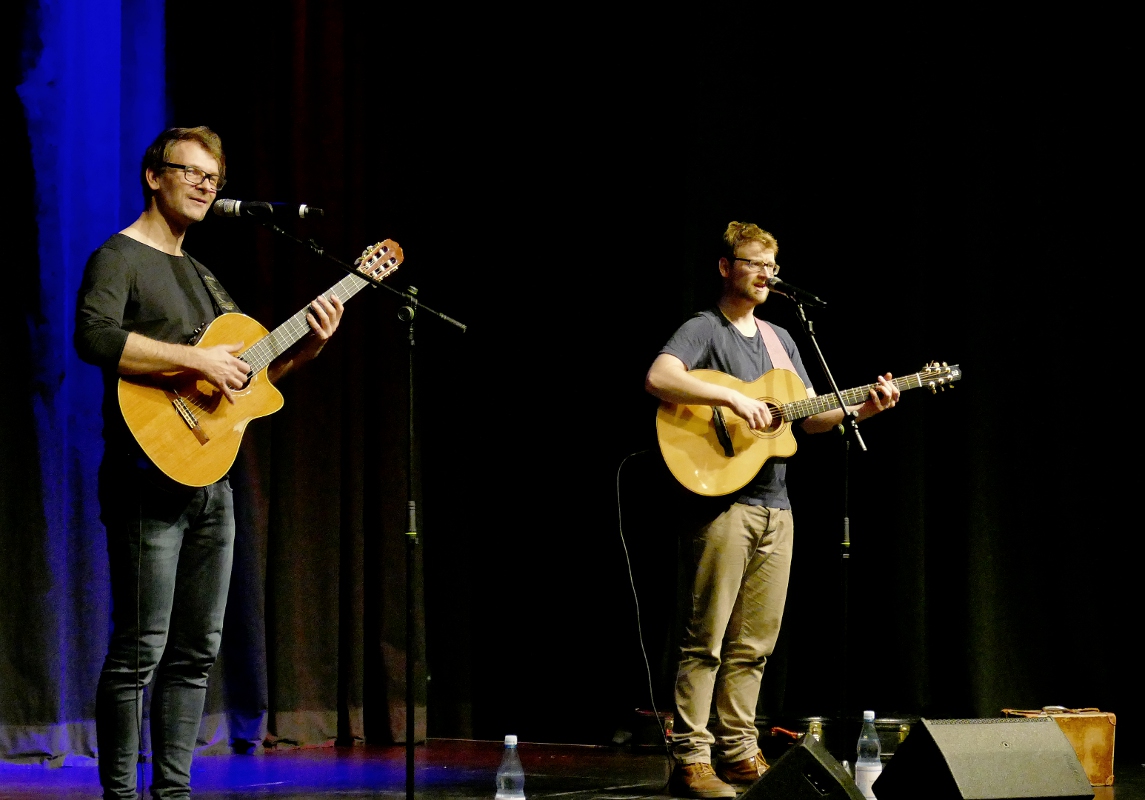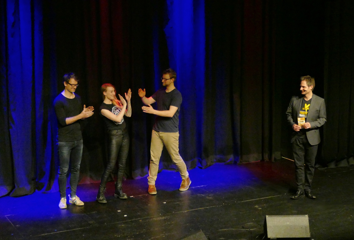 Zwei Halbzeiten, drei Künstler und ein begeistertes Publikum in der Kulturscheune Herborn beim vierten Spieltag der KabarettBundesliga. Bei Anekdoten aus Jacqueline Feldmann`s Leben als Finanzbeamtin oder den Erfahrungen auf einer Kreuzfahrt mit zahlreichen Rentnern und dem Auftritt der Zwei-Mann-Band „ byebye“ die mit ihren deutschsprachigen Liedern wie „Leinen los“ oder „Cabrio im Regen“ sorgten die Künstler für Stimmung und viele Lacher. Am Ende der zwei Halbzeiten war das Publikum gefragt um ihre Punkte zu verteilen. Nach Auszählung der Stimmen konnte das Duo „byebye“ den Abend knapp für sich entscheiden. Moderator Theo Vagedes.