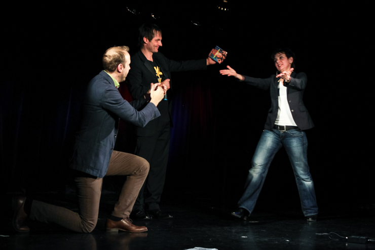 Einen wundervollen Abend hatten alle Trierer, die es am 13.12. in die Tuchfabrik verschlagen hatte. In der ersten Halbzeit überzeugte Sebastian Nitsch mit smoothen Klängen und einem rasterelektronenmikroskopischem Blick fürs Detail führte er uns in die Welt, zwischen dem ganzen Weltgerümpel. In der zweiten Halbzeit therapierte dann Sabine Domogala das Publikum. Ob sie das wollten – das weiß man nicht wirklich, aber es scheint gewirkt zu haben, denn sie gewinnt das Spiel mit 6.21 Punkten und festigt damit ihren Platz an der Tabellenspitze!