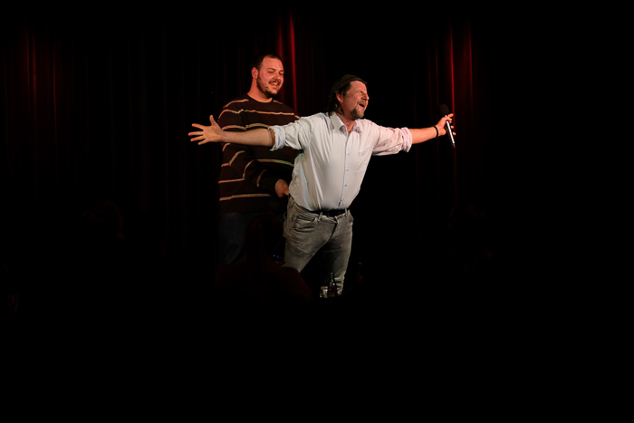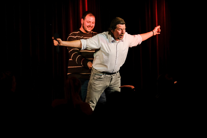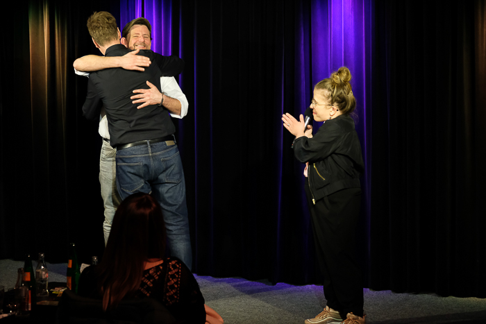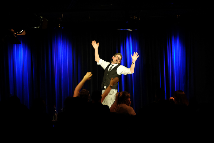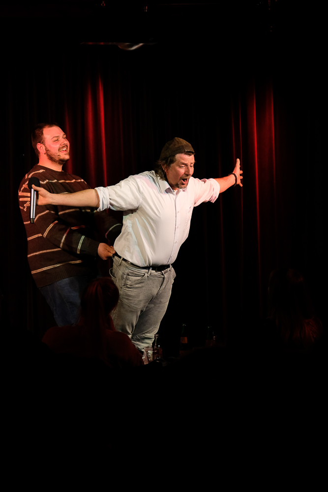 Während in der Obernburg Nora Boeckler und Berhane Berhane für Stimmung sorgten, gab es eine Konferenzschaltung zwischen Theo Vagedes und Ninia la Grande, in der er quasi live miterleben konnte, welch eine grandiose Stimmung Florian Simbeck und Volker Diefes im TAK machten. Dank an Ninia La Grande für die wie immer wunderbare Moderation. Danke an den großartigen Fotografen Thomas Kolwe für die eindrucksvollen Bilder.
