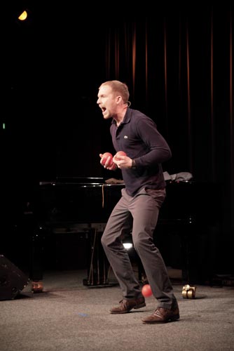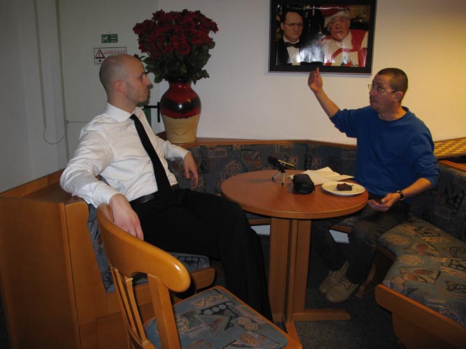 Was für eine Darbietung! Hier wurde nicht nur mit bloßem Wort gefochten, vor allem die Gesangeskunst und musikalische Untermalung am Klavier machten die Vorstellung der Kabarettbundesliga in den Berliner Wühlmäusen am 15. Januar 2012 zu einem gelungenen Abend. Auf der Bühne stand die Berliner Gruppe „Vocal Recall“ in der ersten Halbzeit, gefolgt vom Kölner Kai Spitzl in den zweiten 45 Minuten. Die Hauptstadt-Truppe führt derzeit die Tabelle an, Spitzl belegt den achten Platz.
