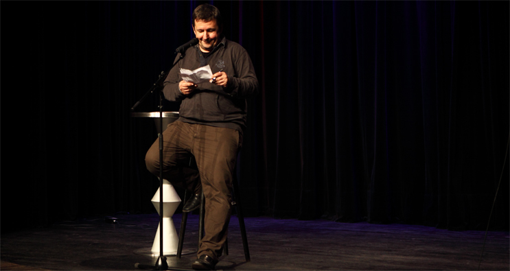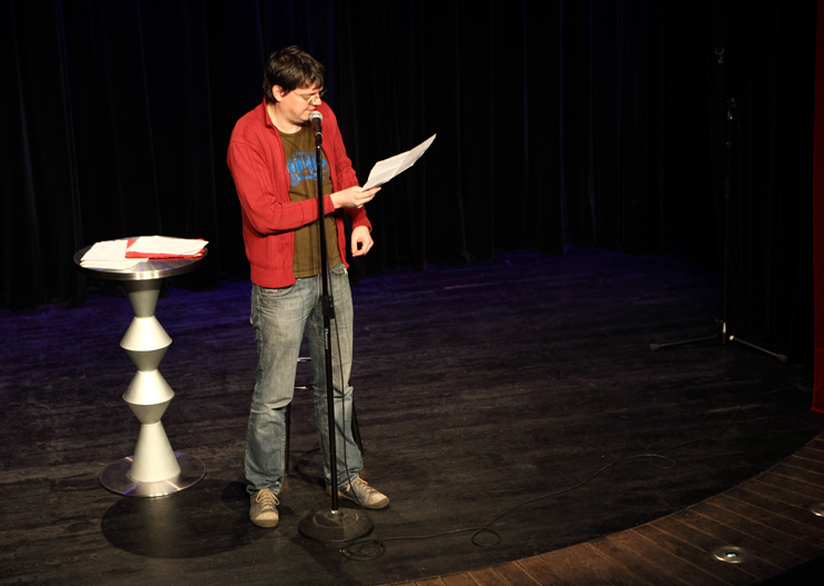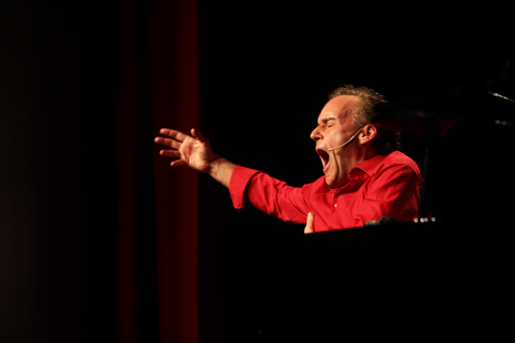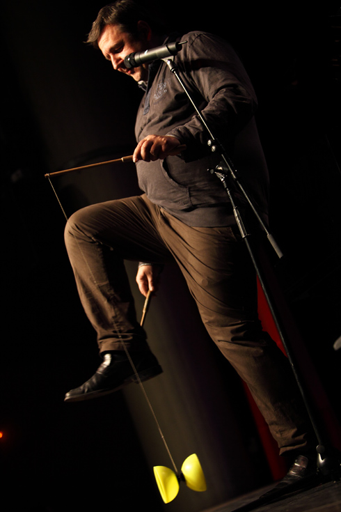 Nach einer kurzweiligen Einleitung durch Moderator Horst Fyrguth überzeugt Klaus Kohler gleich zu Beginn von dem Genie, durch das er sich nach eigener Aussage bereits pränatal schon auszeichnete. Mit begnadeten Händen spielt der beflügelte Mann sich mit „sauschweren“ Stücken durch die erste Halbzeit. Hierbei bietet er dem Publikum nicht nur tiefe Einblicke in die eigene Biografie, er weiß auch, wie Konstantin Wecker reagiert, wenn der Strafraum nicht mehr weit ist. Nichts überlässt er dem Zufall, so wird auch der tosende Applaus nach jedem Stück von ihm selbst dirigiert. Auch sein schauspielerisches Talent bringt er ein, wenn er sich inbrünstig in einen Wurstverkäufer einfühlt. Als Optimist zeigt er sich, wenn er erzählt, wie er trotz seiner ganz privaten Finanzkrise, mit der er seit seinem achten Lebensjahr kämpft, dafür sorgt, dass er seine Aktien doch noch einmal steigen sieht. Nach ersten Fachsimpeleien in der Pause und einer wagemutigen Diabolo-Show von Fryguth betritt Andreas „Spider“ Krenzke die Bühne und berichtet den Zuschauern zunächst von seiner ständigen Angst die Texte zu vergessen, die ihn ganz besonders plagt, seitdem er diese vorsichtshalber aufschreibt. Sein Sohn ist trotzdem stolz auf ihn, war Krenzke doch mal Bauarbeiter. Der Sohn würde das zu sehr idealisieren, meint Krenzke, der zu diesem Job auch nur kam, weil die Firma, die ihn als Leiharbeiter vermietete ihn wegen seiner viel zu komplexen Präteritum-Perfekt-Plusquamperfekt-Konstrukte verabschieden musste. Nicht nur gebaut hat er in dieser Zeit. Niemand erinnert sich mehr daran, aber Krenzke ist sicher: Als er mit seinem Bauarbeitertrupp damals frisch frisiert, manikürt und unerwartet poetisch die Frauen vom Baugerüst aus beglückte, da erfand er den metrosexuellen Mann. Seine nackte Frau zeigt für das Baugerüst vor dem Fenster wenig Verständnis. Wie auch? Sie weiß ja nicht, wie Bauarbeiter innendrinne wirklich sind …