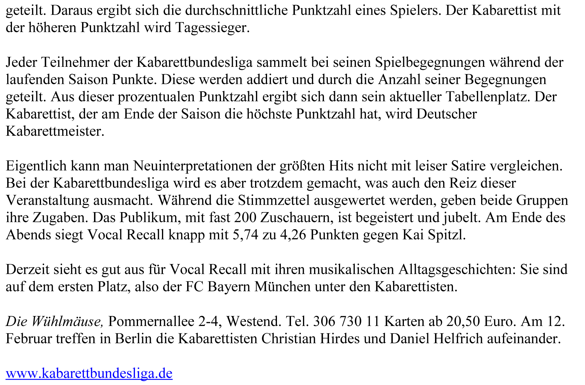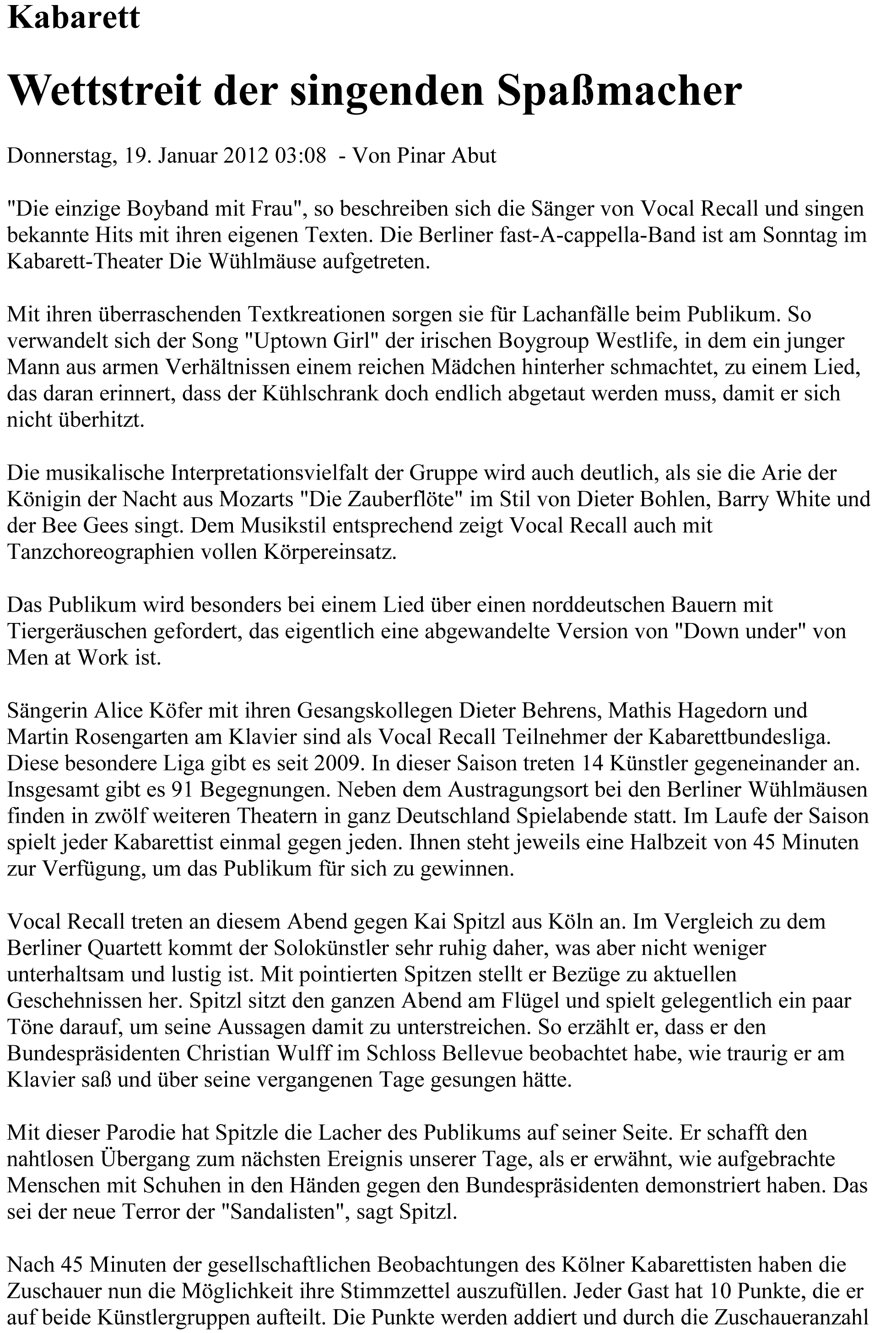 Wettstreit der singenden Spaßmacher 09:40RedaktionAllgemein, Presse, Freunde0 Aus der Berliner Morgenpost…